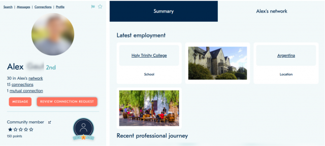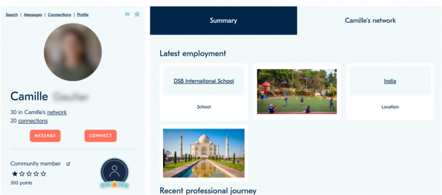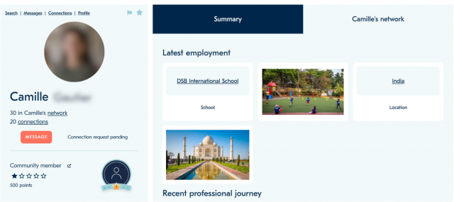 You can access your own community profile via ‘Profile’ in the Community Networking menu on the left side. Please don’t confuse this with your ‘candidate profile’ which is for schools and Teacher Horizons advisers to view your professional experience and qualifications for the purpose of matching you with jobs. For example, your CV and references are never included/visible in your community profile. When you click ‘edit’ on your profile, the information you edit/update will reflect on both your community profile and candidate profile. Your candidate profile is not visible to other community members, only your community profile.